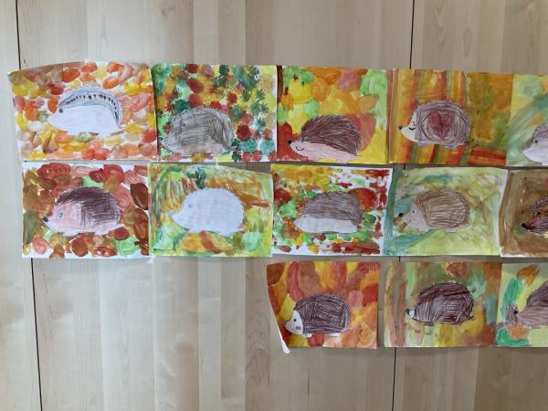 Der Igel versteckt sich im Laubhaufen